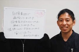 自損事故で通院しました。実は過去にも自損事故を経験したことがあるのですが、他の接骨院では「自損事故は対応できない」と断られたことがあり、今回も少し不安を抱えていました。ですが、知人から「りんちゃん接骨院なら自損事故でもしっかり対応してくれる」と聞いて来院を決めました。
